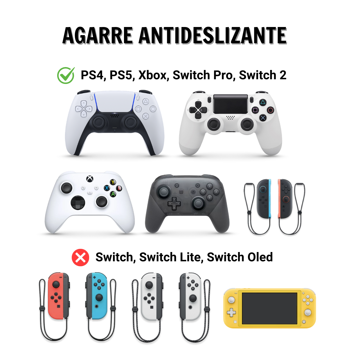 Nuestros thumb grips son compatibles con PS5, PS4, Xbox, Switch 2. No son compatibles con Nintendo Switch 1, Lite, Oled. - ¿Mejoran el agarre o es solo por estética?